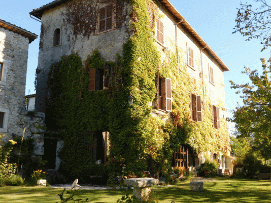 ‘Voglio tanto abbracciare questo edificio!’ lui dice quando vede la casa in cui alloggiamo: un edificio straordinario, almeno a noi, probabilmente dal Medioevo, probabilmente un convento una volta, costruita in gran parte con pietre e mattoni dalle rovine di una città romana, e restaurata negli anni cinquanta da qualcuno che ovviamente sapeva dell’architettura. Indubbiamente è la casa più meravigliosa in cui siamo mai alloggiati.